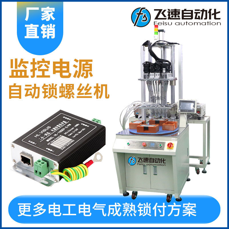 飛速自動(dòng)化為解決上述問題為廠家設(shè)計(jì)了一臺多工位多軸式自動(dòng)鎖螺絲機(jī),工作臺上設(shè)立了多個(gè)工位多把電批同時(shí)運(yùn)轉(zhuǎn)鎖付,通過送螺絲機(jī)構(gòu)進(jìn)行螺絲的輸送,上下運(yùn)動(dòng)裝置接觸螺絲,然后通過鎖螺絲機(jī)構(gòu)對產(chǎn)品進(jìn)行鎖螺絲作業(yè),大大提高了工作效率,可以實(shí)現(xiàn)快速的鎖螺絲作業(yè),特別適用于批量作業(yè),同時(shí)通過電機(jī)的扭力控制,避免了螺絲欠品和浮鎖現(xiàn)象,保證產(chǎn)品質(zhì)量,省時(shí)省力,節(jié)約生產(chǎn)工時(shí),降低企業(yè)的生產(chǎn)成本。