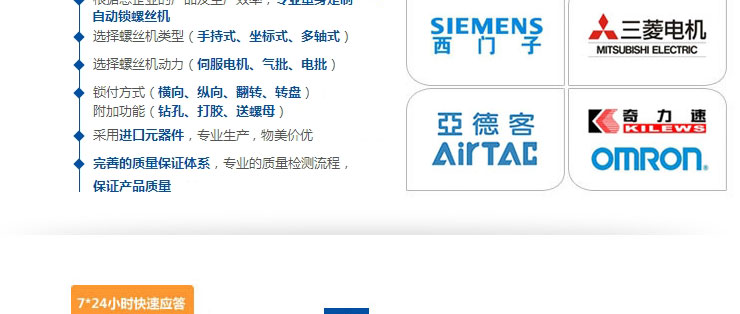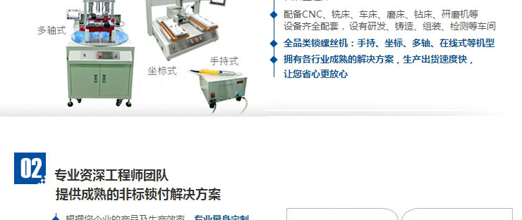 • 產(chǎn)品簡介: 設(shè)備由PLC設(shè)定坐標(biāo)點位,設(shè)備根據(jù)設(shè)定好的坐標(biāo)位置執(zhí)行鎖付任務(wù),配置兩把電批同步鎖付以提升效率,也可以同時鎖付同一產(chǎn)品不同部位螺絲的鎖付工作。 根據(jù)產(chǎn)品結(jié)構(gòu)設(shè)計雙平臺多軸自動擰螺絲機,設(shè)備由PLC設(shè)定坐標(biāo)點位,設(shè)備根據(jù)設(shè)定好的坐標(biāo)位置執(zhí)行鎖付任務(wù),配置兩把電批同步鎖付以提升效率,也可以同時鎖付同一產(chǎn)品不同部位螺絲的鎖付工作,在操作過程中設(shè)備能夠?qū)ぜM(jìn)行各項檢測,發(fā)現(xiàn)不良品立即警報,人性化設(shè)計的自動化螺絲機,其操作簡單,搭配流水線工作環(huán)境,雙平臺采用交換作業(yè)臺人機協(xié)作較好,設(shè)備擰螺絲和人工取放產(chǎn)品分別在不同平臺,輪流作業(yè),人工不停上下料,設(shè)備不停擰螺絲,以解決了企業(yè)大批量生產(chǎn)問題,大大提高了工作效率,降低了人工成本。