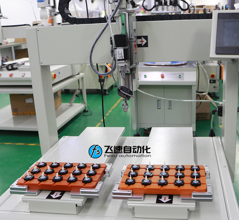 吹氣坐標式自動鎖螺絲機特點: 1、通用性強。可根據不同的產品,設置相對應的行程軌跡程序,便可實現對不同產品的螺絲鎖付; 2、靈活性高。電批數量可以根據實際需要進行設置; 3、降低工人的勞動強度。傳統(tǒng)的手工放置螺絲和對準螺絲頭部需要占用大量的工作時間和精力; 4、自動化程度高。操作簡單,員工訊速掌握操作和調試。一個工人可同時管理幾臺機器。節(jié)省人工; 5、 扭力精確。調節(jié)方便,保證鎖緊質量。