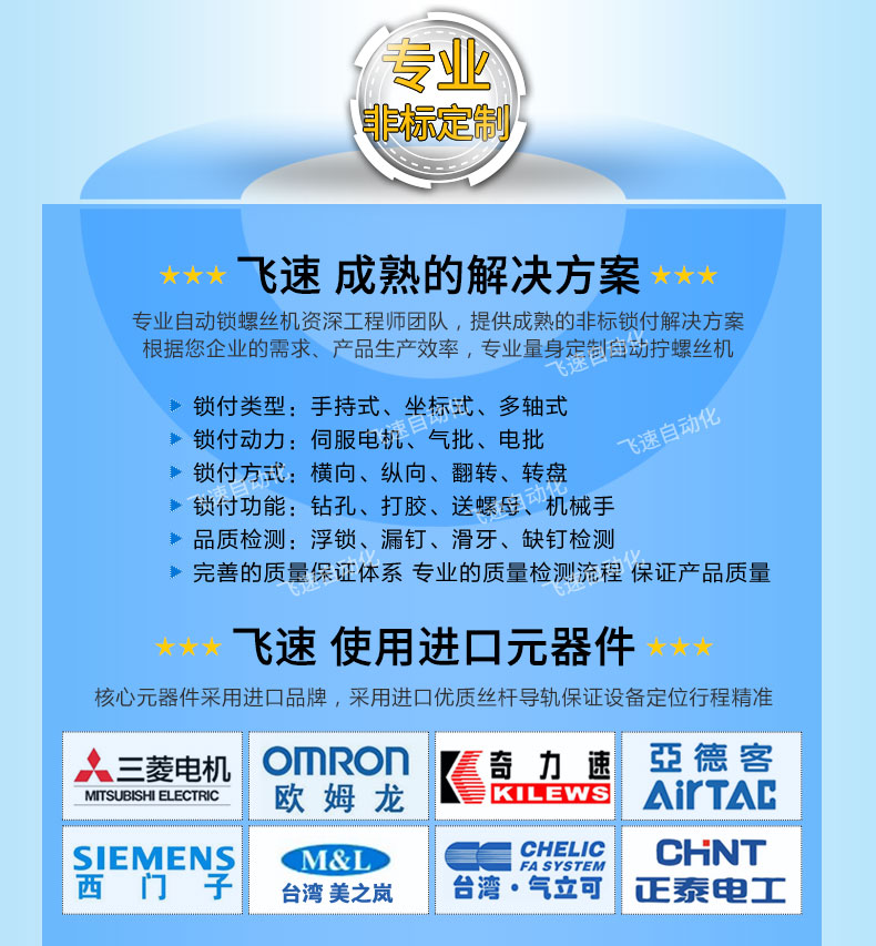 歡迎光臨飛速自動(dòng)化官網(wǎng),專注自動(dòng)鎖螺絲機(jī)設(shè)備研發(fā)、生產(chǎn)、銷售!