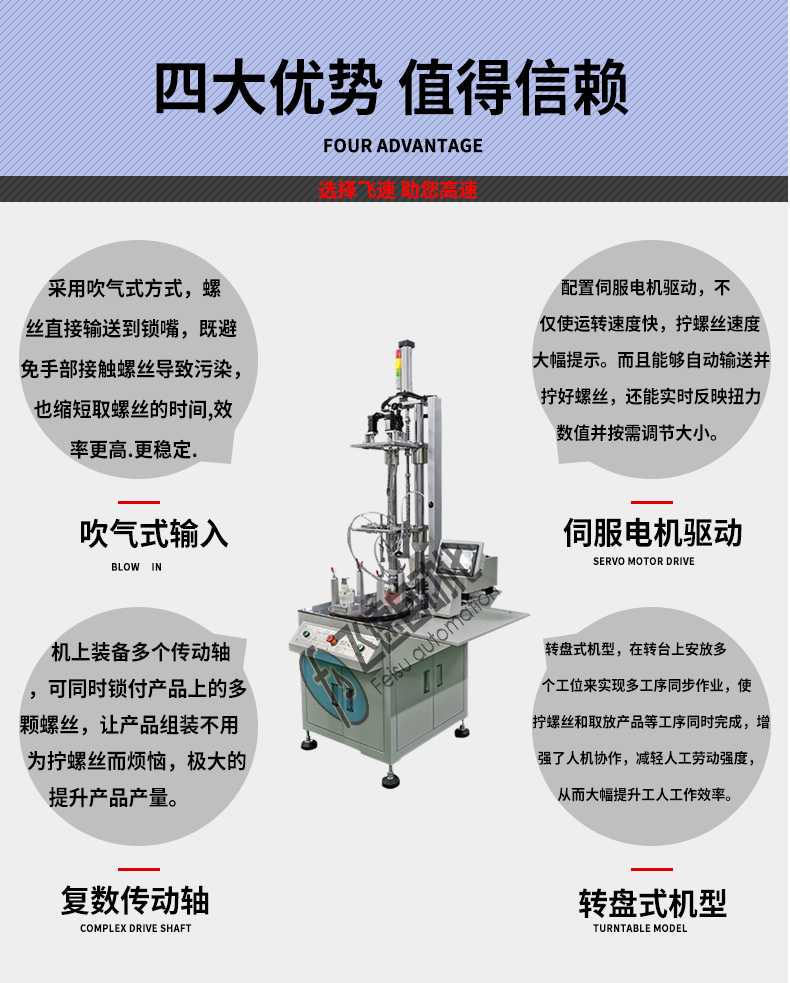 歡迎光臨飛速自動化官網(wǎng),專注自動鎖螺絲機設(shè)備研發(fā)、生產(chǎn)、銷售!